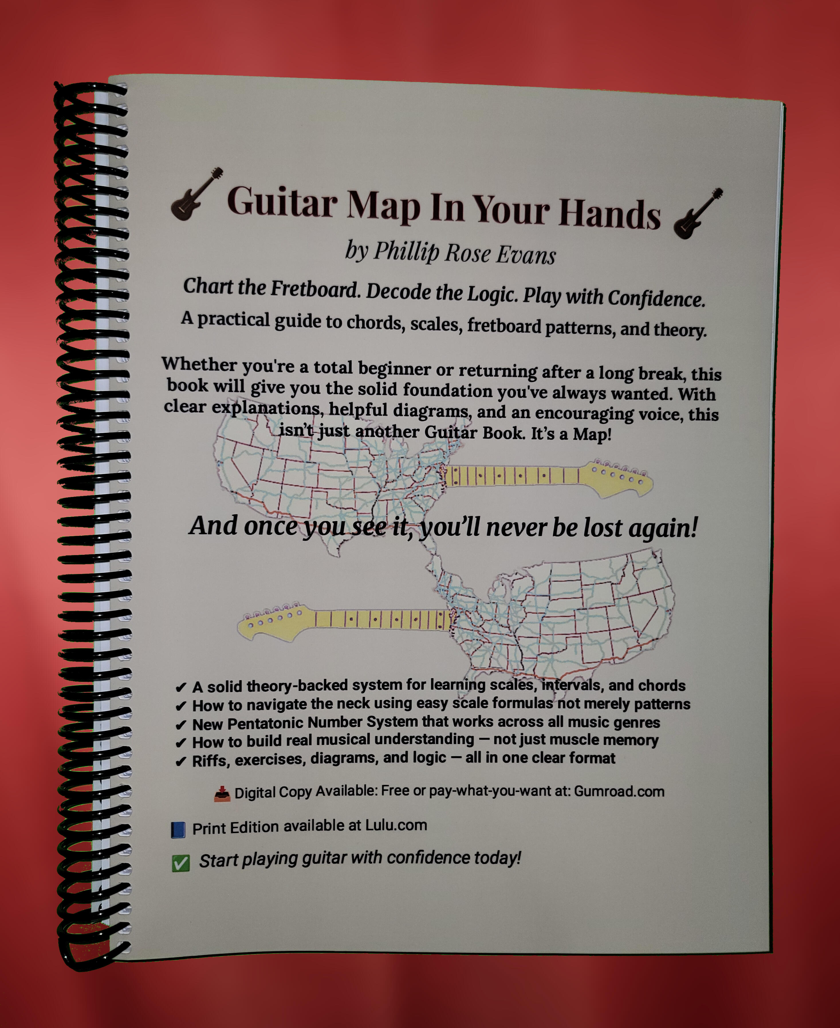 🎨 Full-Color PDF Download Edition: Get the complete 315 page Digital Edition of Guitar Map in Your Hands — packed with fretboard diagrams, full-color visuals, and clear explanations.Available on Gumroad as a Pay-what-you-like Download (Suggested: $15 USD) — Free to explore at no cost, or support the project if you wish (much appreciated!). 🎸📖 B&W Grayscale Print Copy: Available at Lulu.com, coil bound to lie flat on your music stand.